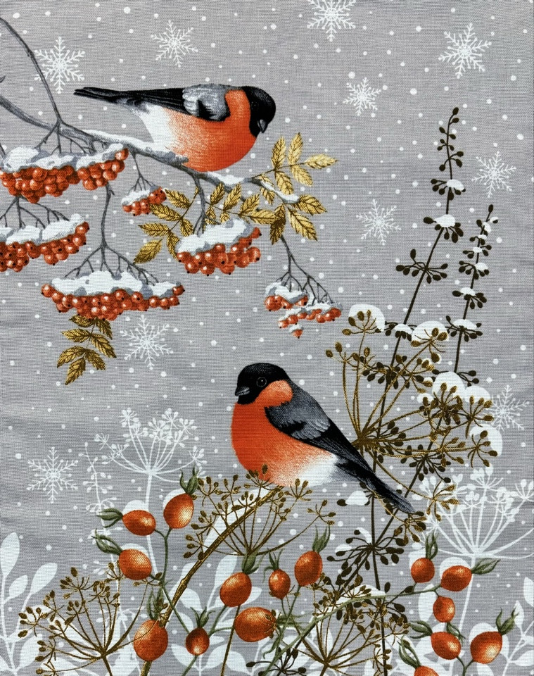Полотенце "Музыка зимы"-снегири рогожка 50*60 см